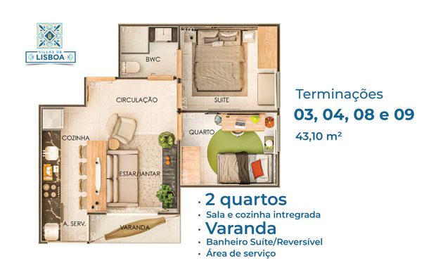 O imóvel conta com 2 quartos, banheiro suíte/reversível, além de área de serviço funcional. A área de lazer é completa, perfeita para momentos de descanso e diversão com a família.